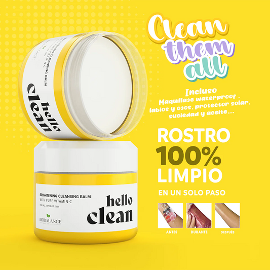 Hello Clean, Bálsamo Limpiador y Removedor de Maquillaje Iluminador con Vitamina C, Bioherapy