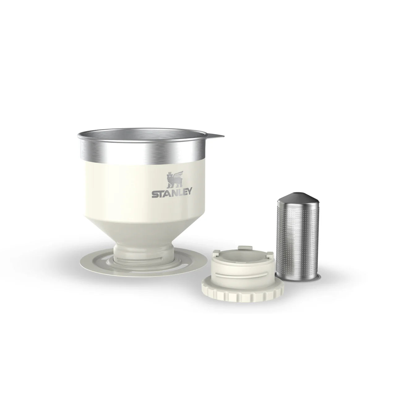 En el campo o en su propio patio trasero, preparar la taza perfecta de café bien caliente no es más fácil que esto. Nuestro duradero pour over de acero inoxidable tiene todas las herramientas que necesita. Un filtro reutilizable fácil de limpiar significa que puede omitir las cosas desechables.
